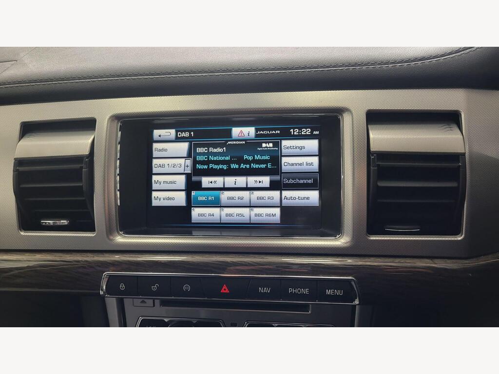 Active Ventilated Front Seats - Heated/Cooled, Dual Zone Climate Contr. - Auto. Air Recirculation, Electric Rear Window Sunblind, Meridian Audio Sys.-825W w.17 speak. and CD player, Seats - Electric Driver/Pass.(12x12) Driver Memory, Premium - Dark Sapphire, Parking Aid - Front with Rear Camera, 7 Inch Full Colour Touch-Screen Display, Cruise Control with Automatic Speed Limiter (ASL), Digital Audio Broadcasting (DAB) Radio Receiver, Driver Information Centre with Dual Function Trip Computer, Drivers and Passengers Heated Seats, Dual Zone Automatic Climate Control with Air Filtration, Humidity Sensing and Dual Zone Temperature Control for Driver and Front Passenger, Front Media Interface w. AUX Socket, USB and Ipod Connectivity, Front Seats - Whiplash Reduction System, Front and Rear Electric Windows with One - Touch Open/Close and Anti - Trap, Heated Front Windscreen with Timer, Intelligent Stop/Start, Jaguar Smart Key System with Keyless Start, Navigation System with HDD Mapping, Postcode Entry, Destination Entry and Voice Guidance, Rear Parking Aid with Touch-Screen Visual Indicator, Seats - Driver/Passenger Electric Adjustment (10 x 6 Way) with Driver Memory Function, Soft Grain Leather Seats, Upper Facia, Door Top Roll, Armrests and Centre Console Lid